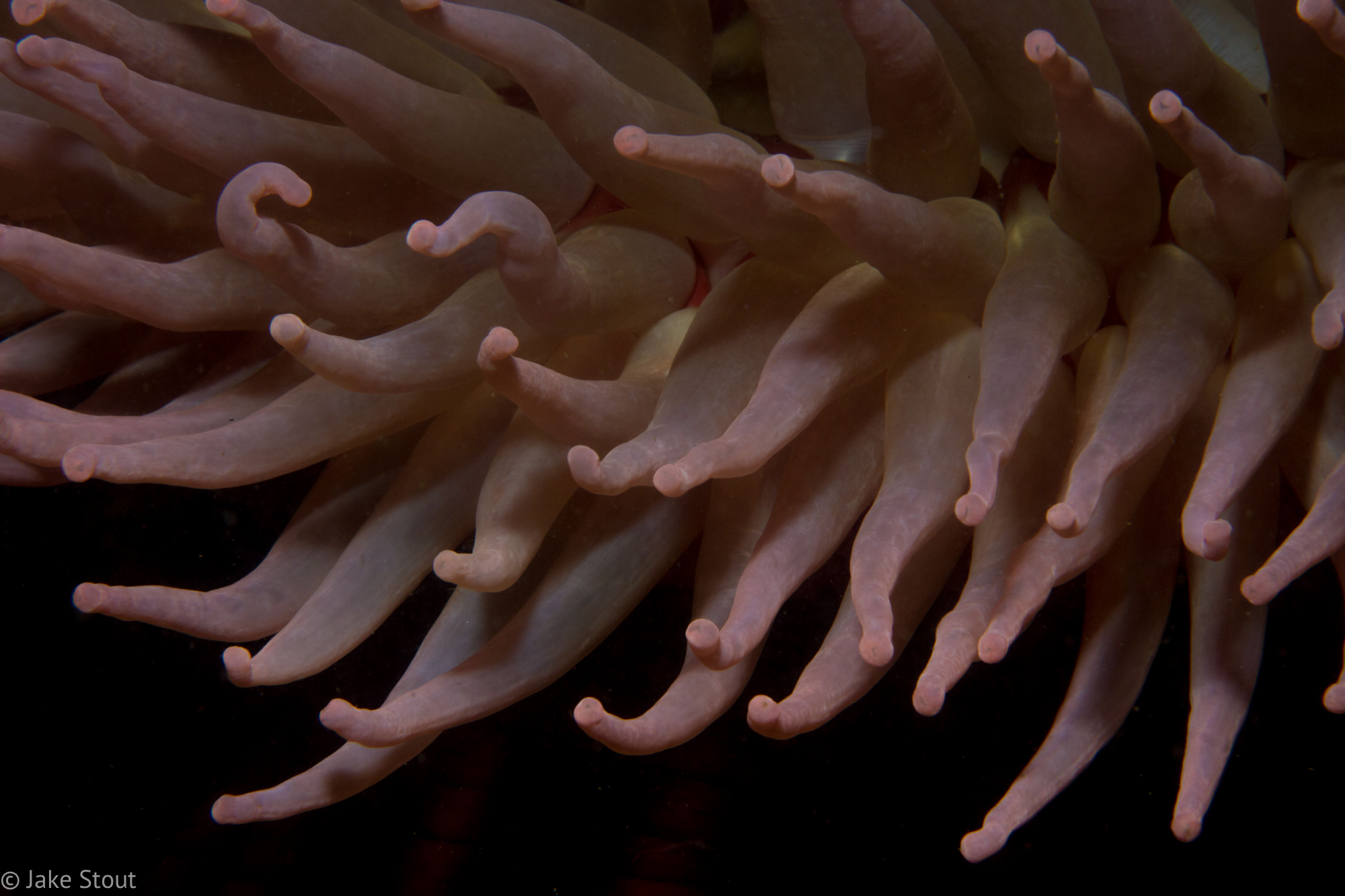 The last spot I did was the metridium fields. Metridiums are huge white anemones that look really ethereal and peaceful. To get to them I would follow an old pipe line that was linked to the canning factories that are now the Backscatter shop. Becca told me that the metridiums are a little hard to find once you reach the end of the pipe so I didn’t have my hopes up and was just there to explore. Heading along the pipe I saw ton of nudibranchs and bat stars, but above me there were increasingly thick clouds of sea nettle jellies. When I reached the end of the pipe I decided to just photograph the sea nettles because they’re so cool, and I probably wasn’t even going to be able to find the metridiums. So I started photographing the sea nettles floating along with them, then all of a sudden I looked down and saw the metridiums! I swam down to them and started photographing. I got some pretty good shots. I ascended a few feet to swim over and photograph more. It was then a sea nettle sting me across my lips. It wasn’t bad bad sting or anything just was shocking and hurt a little. Then I had a realization I had to surface through the cloud of millions of sea nettles. I was down about 50 FSW and started my accent. The safety stop was really fun as I tried to avoid their tentacles. I looked down and saw about forty or fifty of them flying in all directions as they were kicked by my fins. It was a great dive.