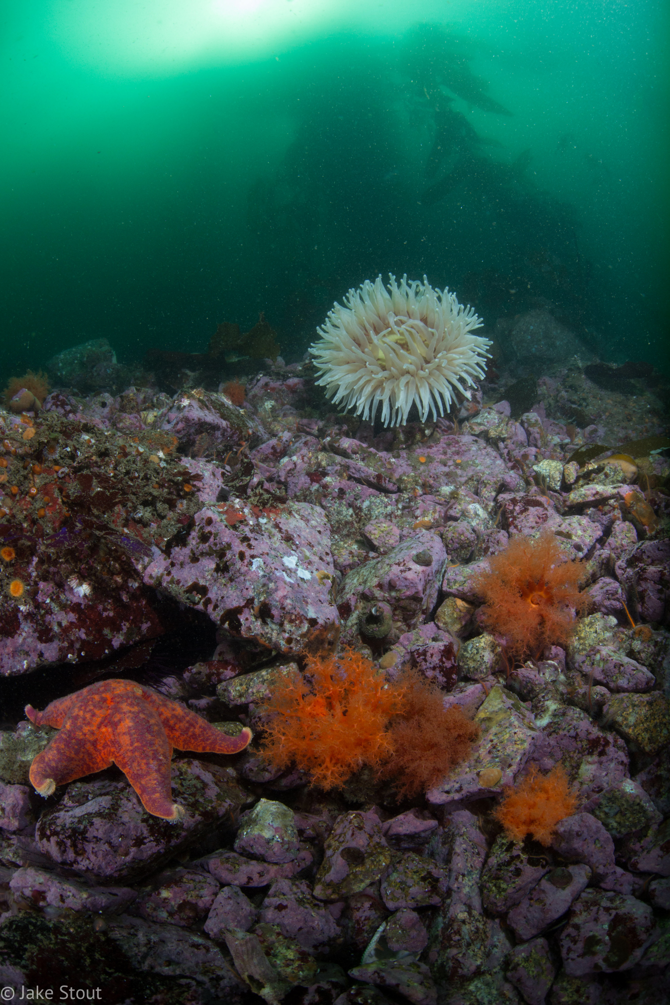 The next morning I got right into the water with some of the crew from Backscatter. As we dropped down into the green murky water of the breakwater wall the massive kelp forest appeared out of the green. I started shooting. I got some shots, not good ones though. On my surface interval I sat down with Jim Decker the CEO of Backscatter and he looked over my images and gave me a few pointers about lighting and strobe placement. Jim is one of the judges for the competition and a really good photographer so I listened really well to what he had to say. The competition wasn’t going to start for a few days so I had some time to practice and get the hang of shooting in Monterey. Each day I set out from the shop and walked down to the water to dive the breakwater. The breakwater is mainly divided into three areas; the wall, middle reef, and the metridium field. Each is different and I wanted to dive each before the competition so I could see where I wanted to focus.