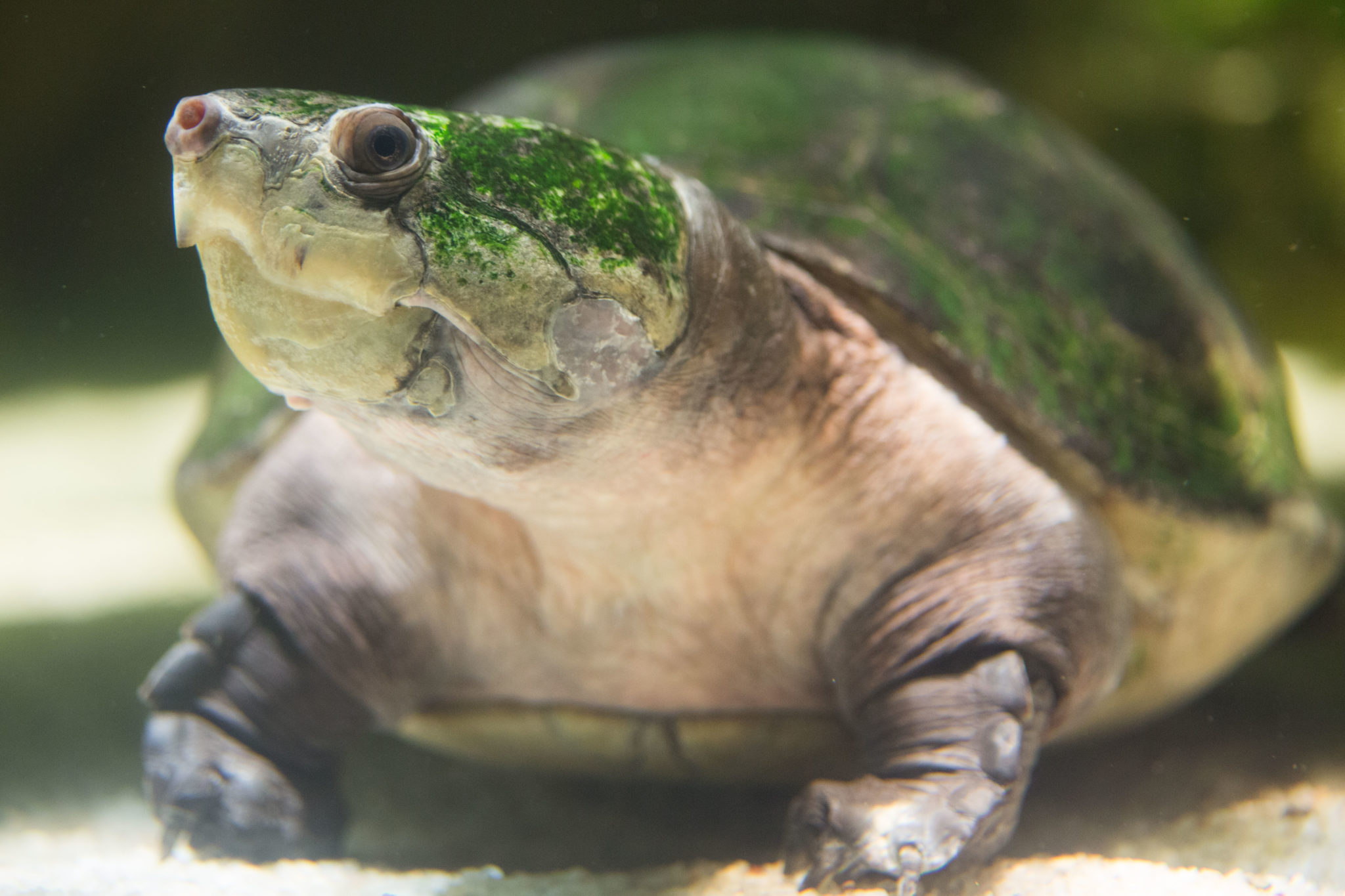 Once the training was done and best rescue procedures were thought of I went to work with some of the team with the ACRC, including Meredith Myers. She helped me prepare food for some of the animals housed on exhibit or in holding, these included lungfish, a cowfish, a map puffer named Duncan and many turtles. I went around to the tanks feeding some of the turtles throwing allotted amounts of lettuce into the tanks. One of my favorite turtles is a pig nosed turtle named Funzo, this species is the only freshwater turtle with fins.