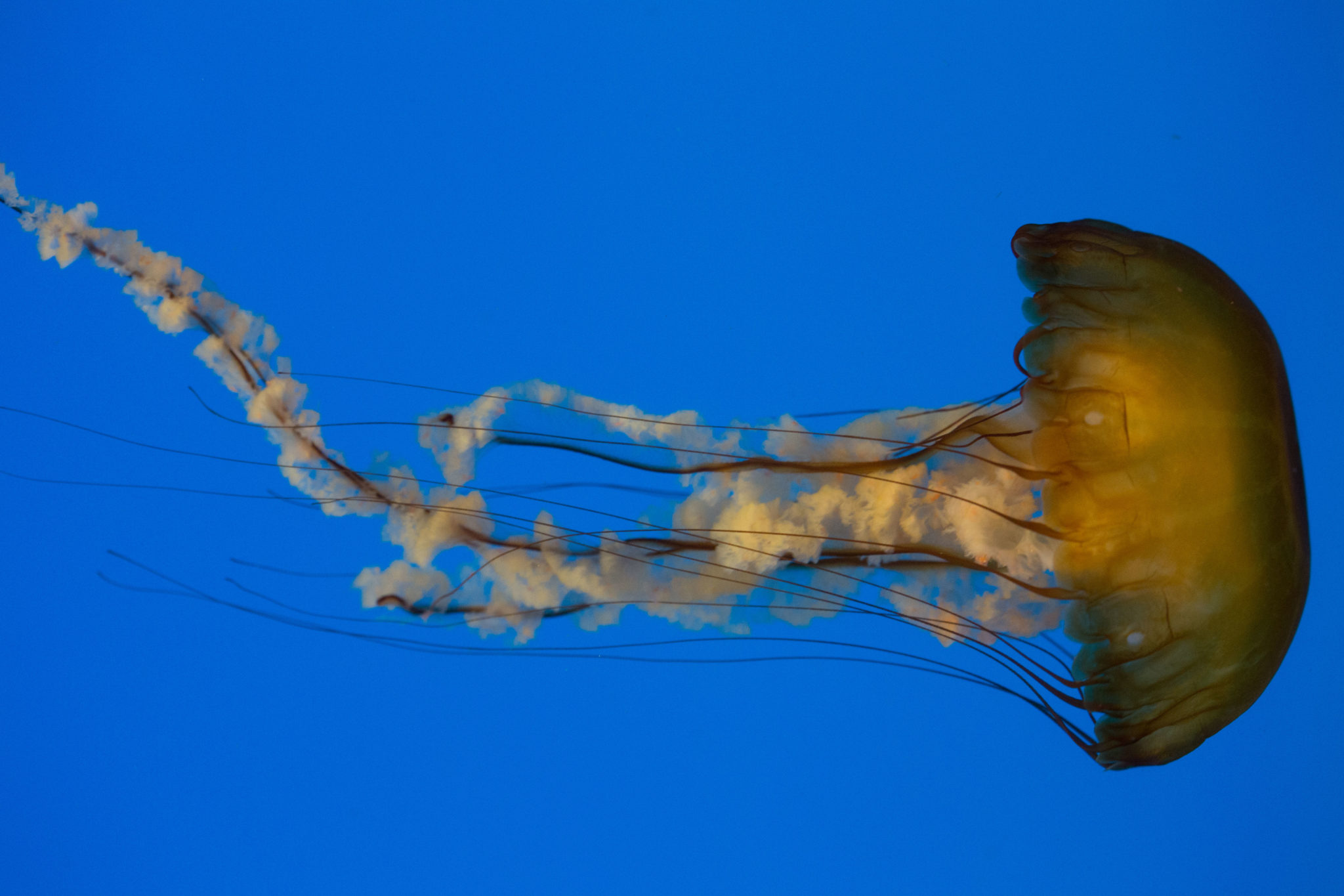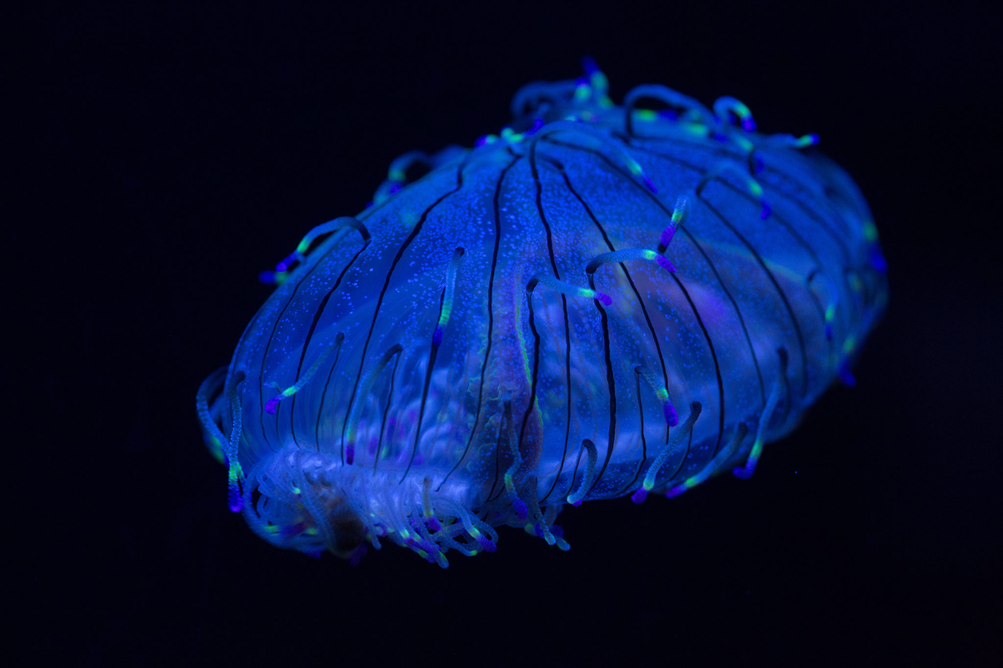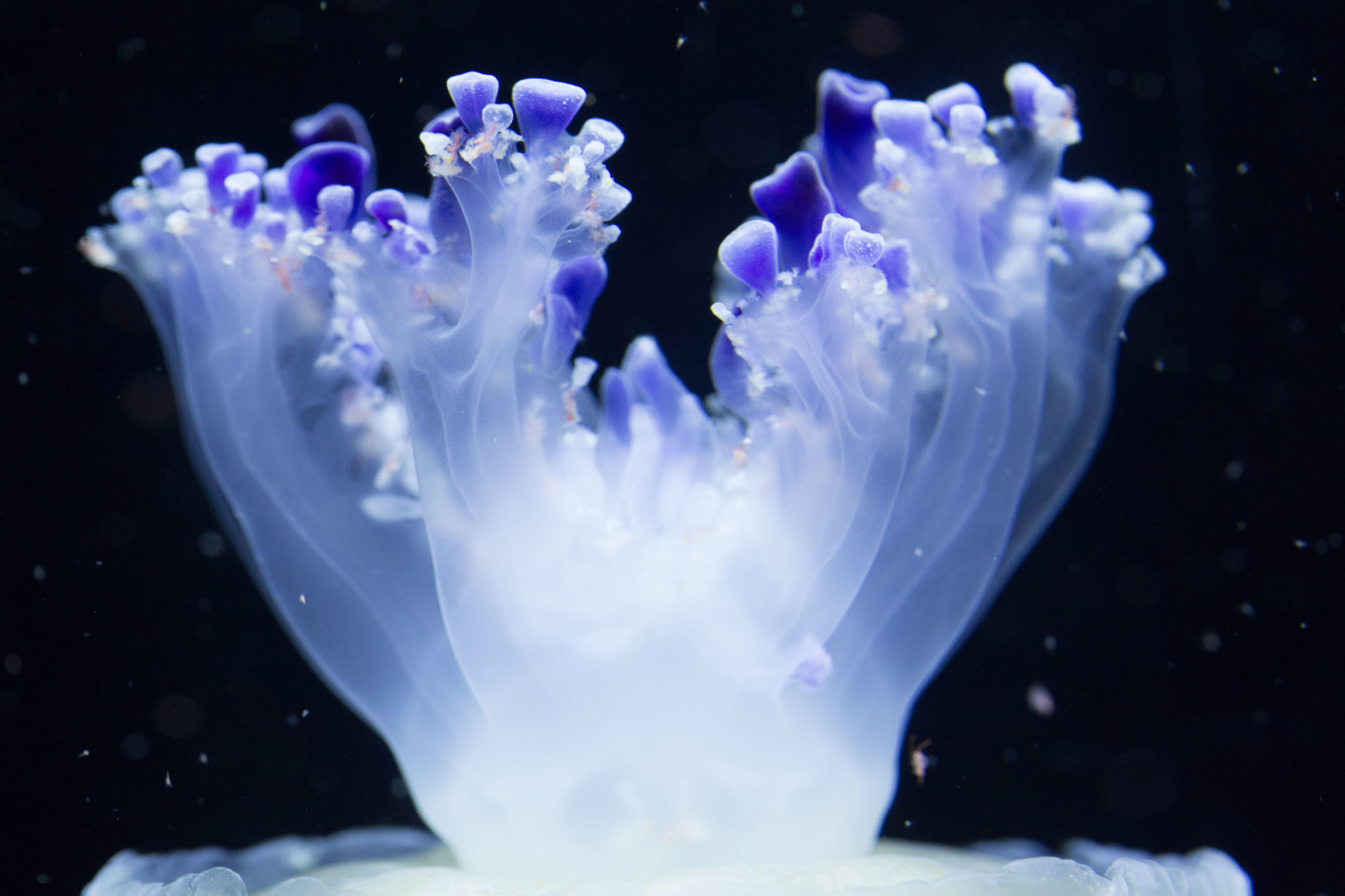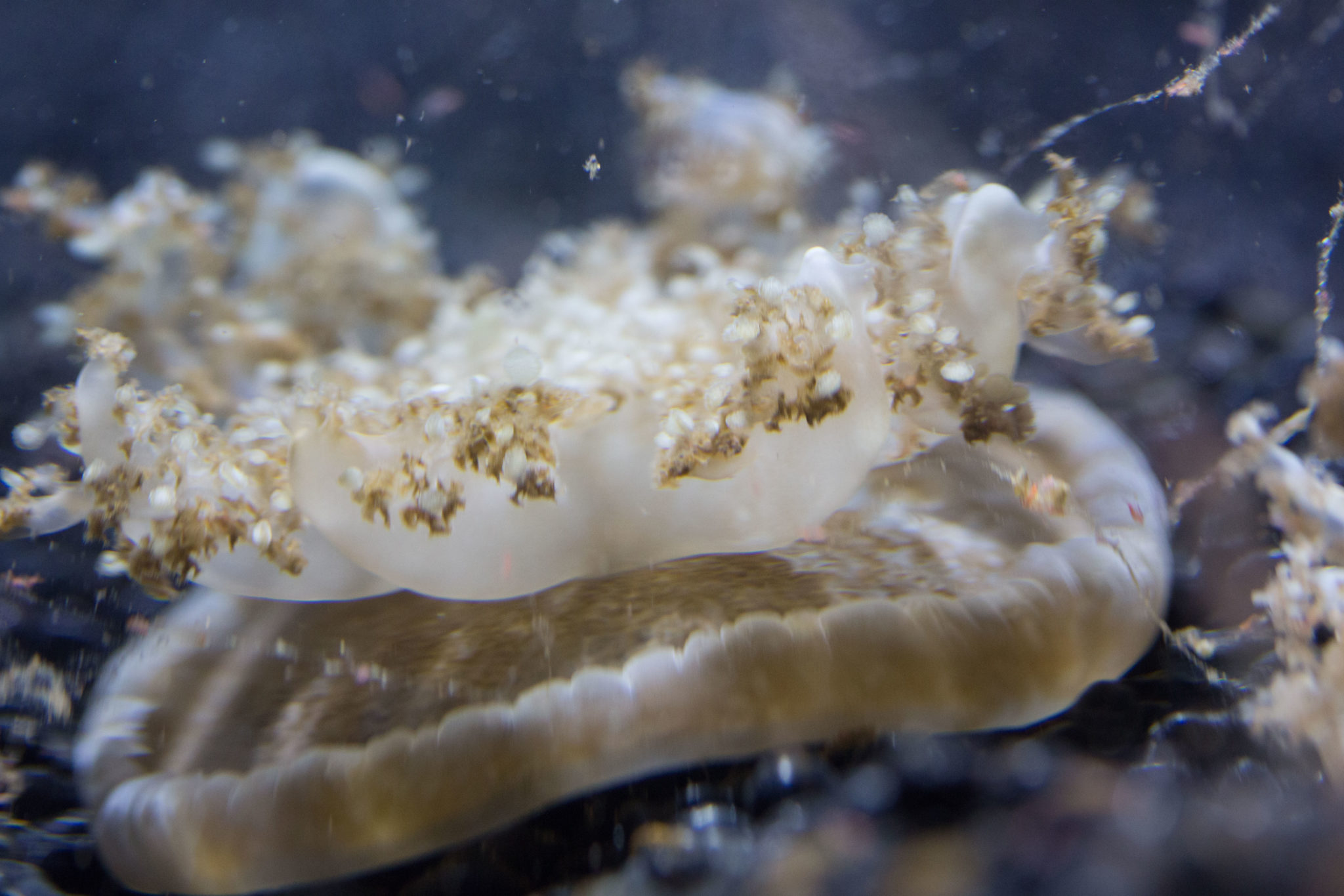 After feeding the sharks I went over to the jellies department, where I met Annie Miller, one of the aquarists for the jellies. She explained the ins and outs of how to keep such delicate creatures alive in captivity with certain amounts of current and food. One of the major things that the jellies department tries to avoid is “jelly jams”, this is when the current is to weak or strong and the jellies begin to get stuck in the filtration system and can clog the pipes and kill the whole tank if not taken care of. After being introduced to all the jellies on exhibit I went over to the jelly culture lab where the team cultures the jellies and raises them to be put on exhibit. The lab raises most of the jellies that go to exhibit and any that they have and don’t need can be shipped to other aquariums or be feed to other jellies. Matt Wade is one of the directors of the jellies culture lab and is currently working on raising box jellies. Because they are level one venomous animals they are taken very seriously, though they are only a few centimeters now they could grow very big and be extremely dangerous. Matt showed me some of the jellies under the microscope looking at the different life stages and how complex they are. For being considered so simple and well brain less they are actually very complex.