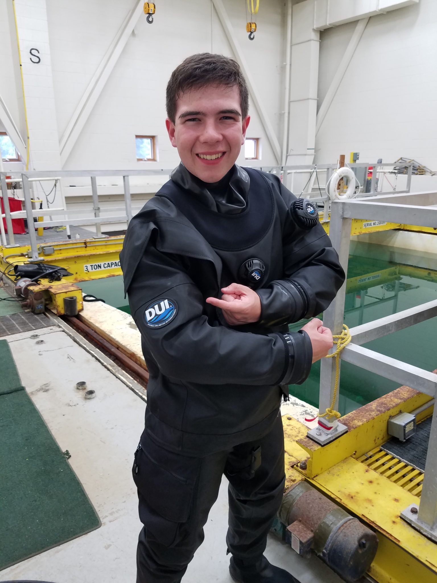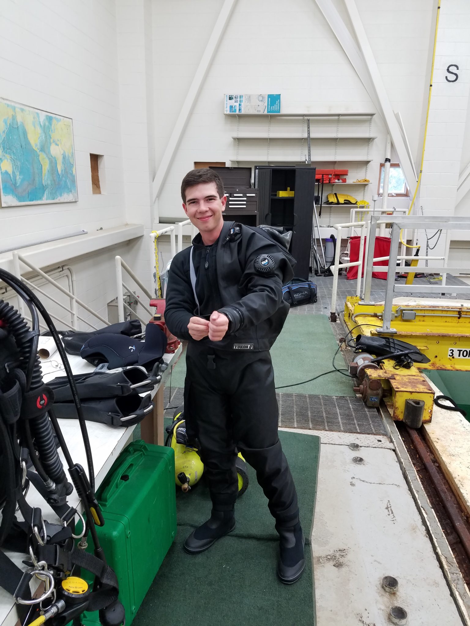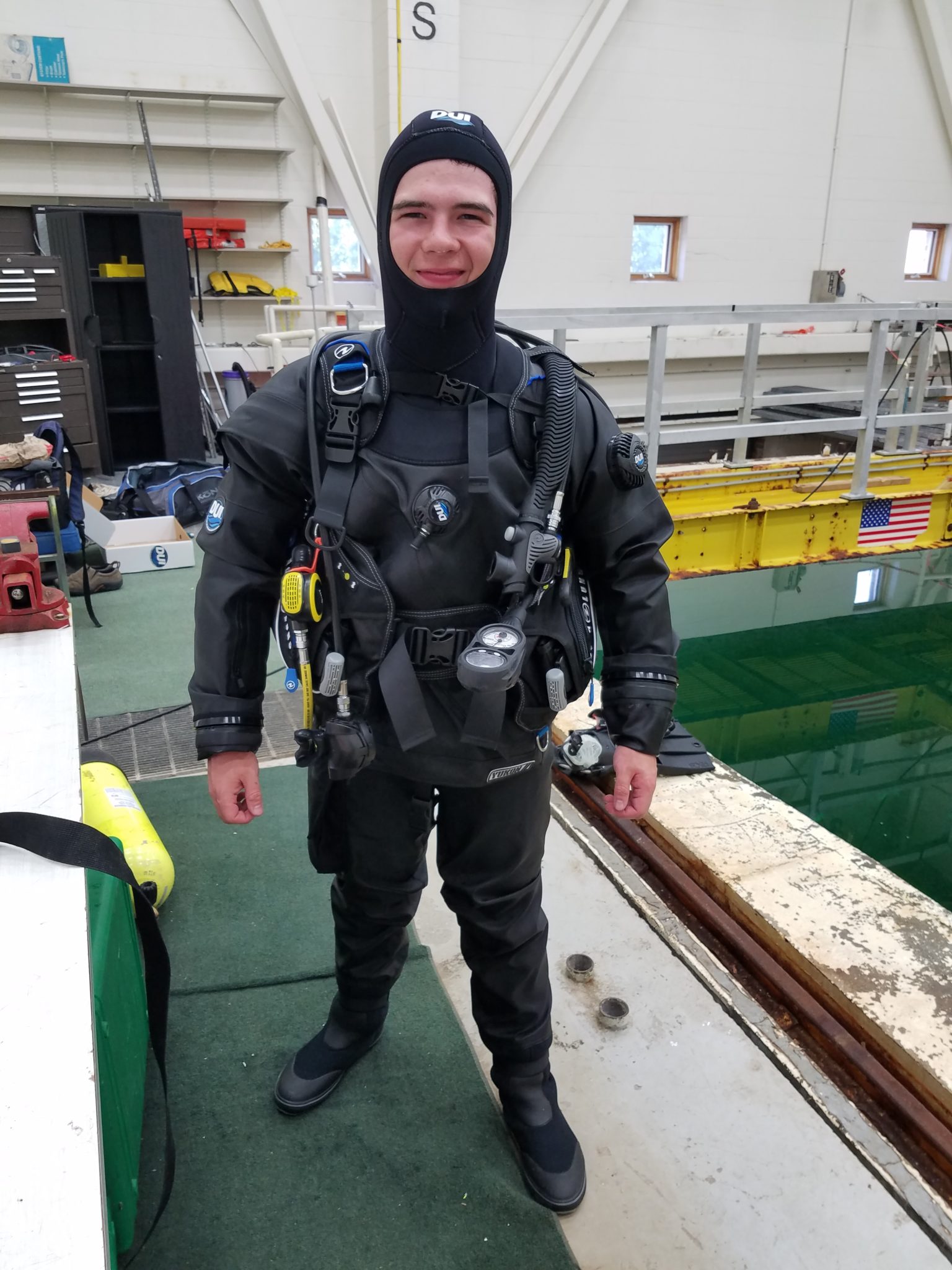 I spent the next few days with Vin Malkoski working on my dry suit training. I donned my DUI drysuit donated by Faith Ortins, and jumped into the green waters of the New Bedford test pool with Vin. Once we nailed down my weight system, we practiced buoyancy control and flipping around if I ever get inverted. I had a lot of fun flipping around just getting use to diving in what some people relate to a ziplock bag. But I felt comfortable and way warmer!